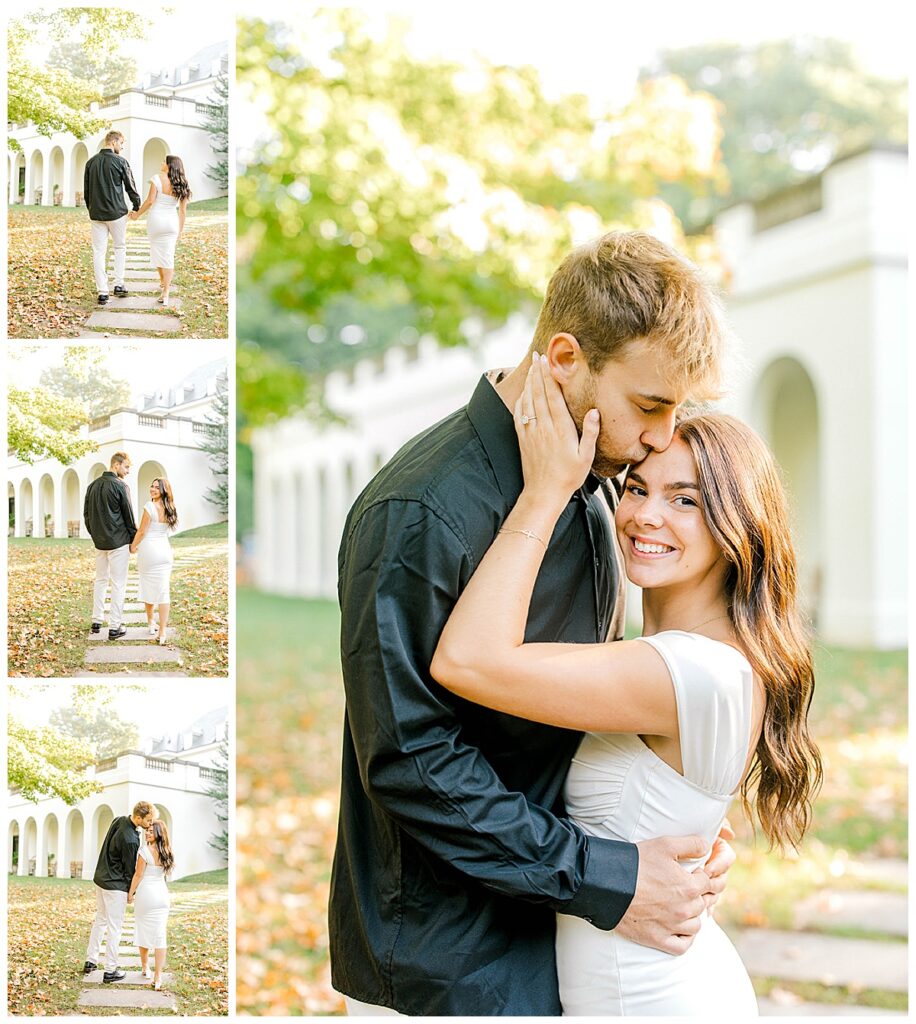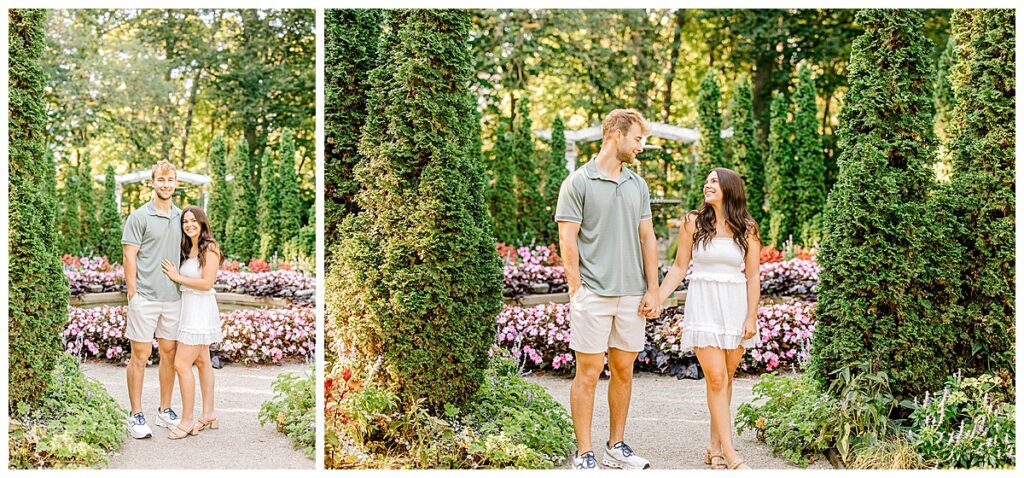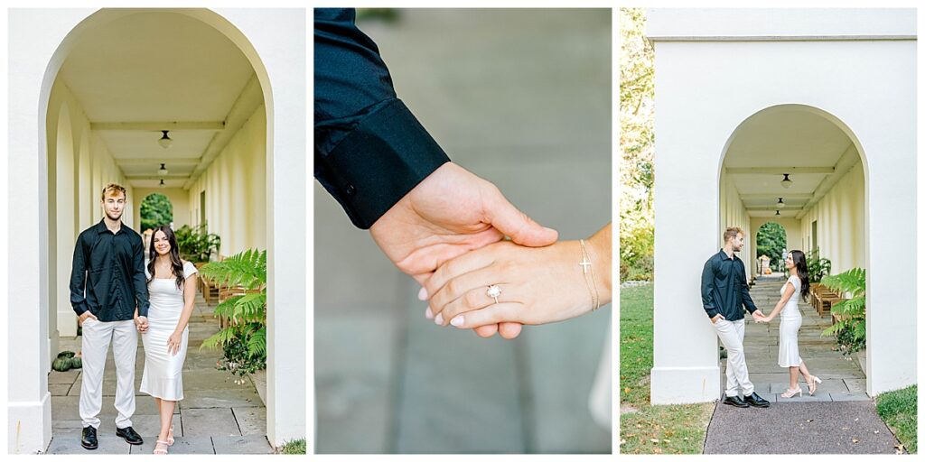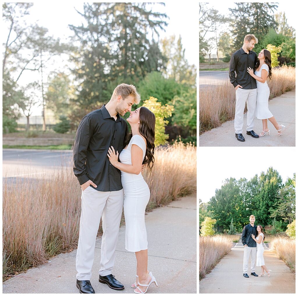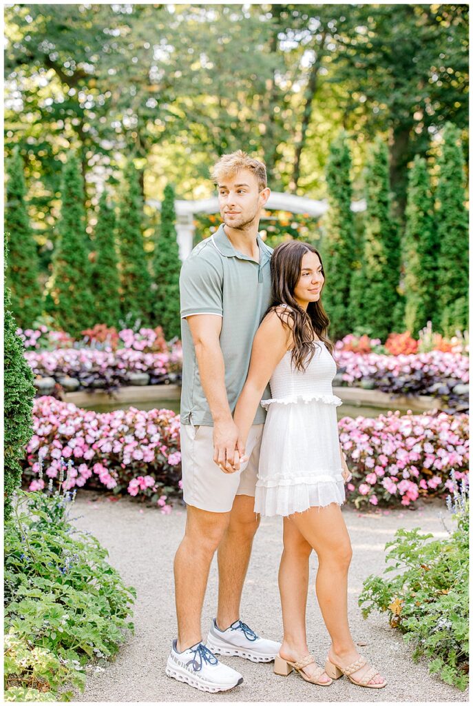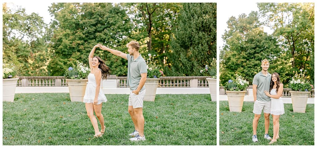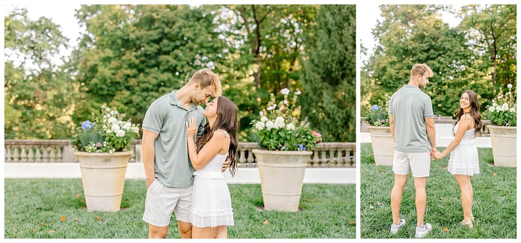 We met right as the museum opened, and honestly, it was the best decision. The gardens were quiet, the light was soft and golden, and we didn’t have to pause or wait for a single crowd to pass. It felt like we had the entire place to ourselves—a rare treat at one of the most iconic engagement photo locations in Indianapolis.