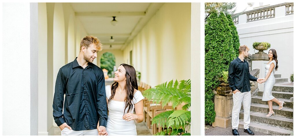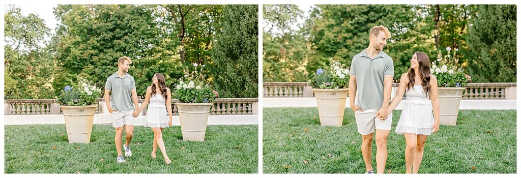 There’s just something magical about mornings at Newfields—and Gabby and Coleman’s engagement session reminded me exactly why I love photographing there so much. As an Indianapolis engagement photographer, I’m always searching for that perfect combination of light, location, and emotion—and we had all three that Saturday morning.