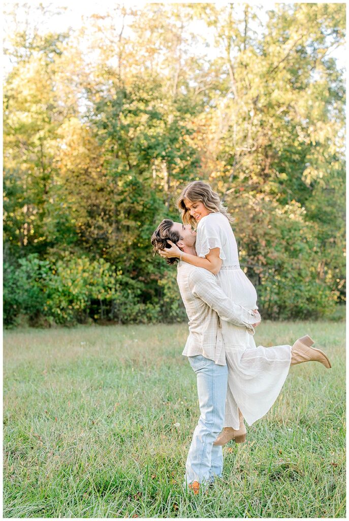 Working with couples like Dria and Hunter is exactly why I love being a wedding photographer. From the moment we met at Hunter’s family property near Martinsville, I knew this session was going to be something special. These two were completely laid-back, down for anything, and genuinely excited to explore the land and create beautiful memories together—it made my job so much fun.