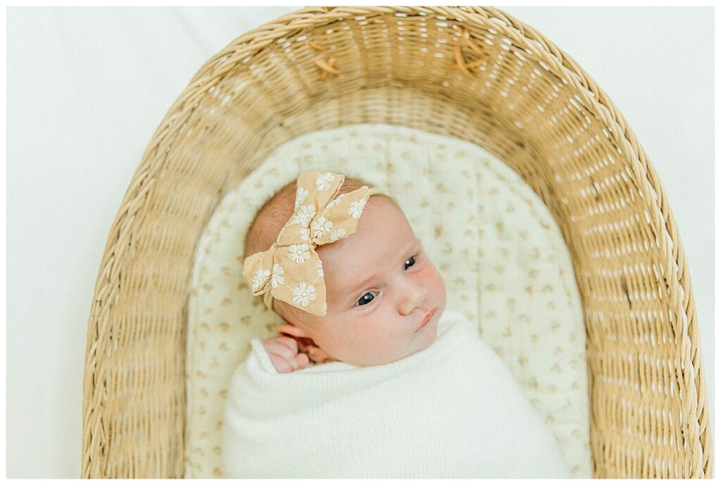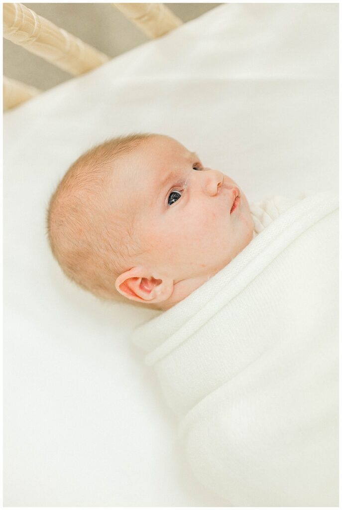 From the moment she arrived, Cate was wide awake and full of curiosity. While most newborns tend to snooze through their session, Cate had other plans! Bright-eyed and alert, she took in every moment, making for some incredibly sweet, awake newborn portraits. Those deep gazes and tiny expressions are always so precious to capture, and Cate gave us plenty of them.